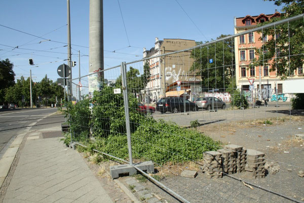 Nur ein weiteres Beispiel für Rücksichtslosigkeit: Bei der Umgestaltung der Connewitzer Spitze wurde unter anderem ein Amselrevier zerstört. Auf dem linken Foto ist die dichte große Hecke noch zu sehen, die ersatzlos beseitigt wurde. Fotos: Sabrina Rötsch