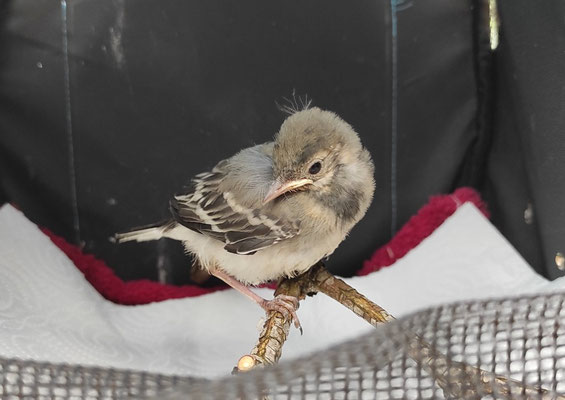 Außer der Bachstelze waren Ende August 2022 noch 8 Haussperlinge, 4 Mehlschwalben, 4 Rabenkrähen, 1 Buchfink und 2 Kohlmeisen in der Wildvogelhilfe Leipzig in Pflege.