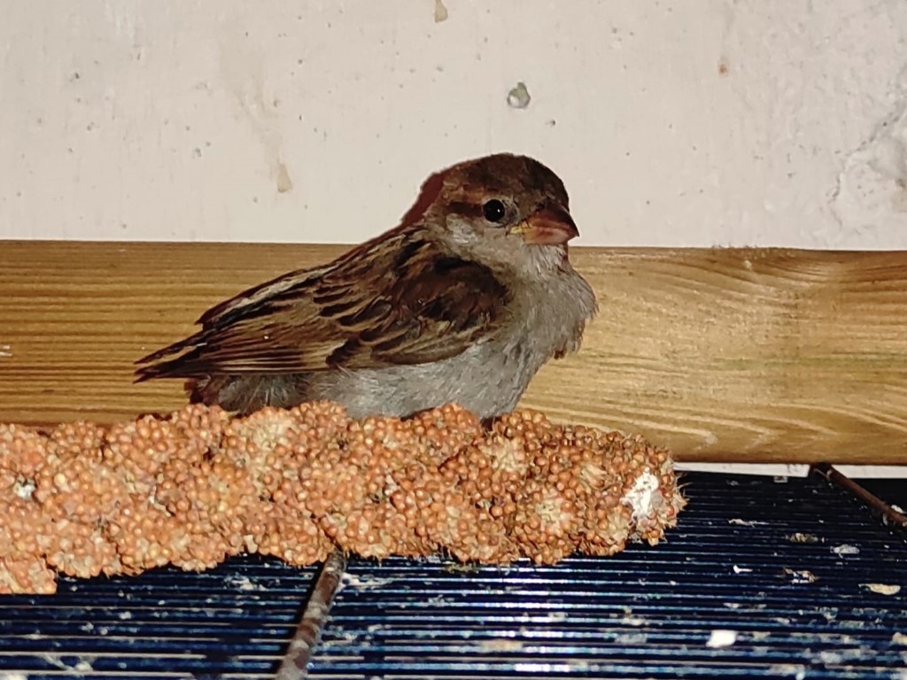 Der Finder eines jungen Haussperlings hat den Nestling, der am Boden lag, mitgenommen, um die Aufzucht selbst zu probieren. Fütterungsempfehlungen holte er sich in einem Zoogeschäft. Die Finder haben es gut gemeint und der Beratung im Fachhandel vertraut. Leider wissen die Mitarbeiter in Zoogeschäften aber meistens nicht über die Bedürfnisse von Wildvögeln Bescheid. Viel zu häufig werden im Zoofachhandel für die Nestlingsaufzucht überwiegend ungeeignete Futtermittel angeboten. Die sogenannten Nestlingsfutter bestehen meist aus Bäckereierzeugnissen oder getrockneten Insekten, welche von den Jungvögeln schlecht verdaut und kaum verwertet werden. Falsches Futter führt zu Entwicklungsstörungen des Vogels. Frischtote oder gefrostete Insekten und Brei aus halbreifen und getrockneten Saaten wäre die richtige Kost für dieses Haussperling gewesen.