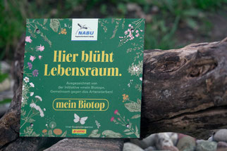Das Projekt „mein Biotop“ läuft bereits seit Juli 2021. Es hat zum Ziel, Lebensräume durch Aufklärung zu schützen und mit einfachen Mitteln neue Biotope zu schaffen. Dafür eignen sich große, aber auch kleine Flächen, sodass sich nahezu jeder an diesem Mitmachprojekt beteiligen kann. Auf der zugehörigen Website www.mein-Biotop.de werden verständlich die engen Beziehungen einzelner Arten im Ökosystem aufgezeigt, und der NABU gibt Tipps, wie man funktionale Lebensräume schaffen kann. Zielgruppe des Projektes sind alle, die etwas gegen das Artensterben unternehmen möchten – beispielsweise Balkon- und Gartenbesitzer, Schulen und Kitas, Sportvereine oder Firmen. Wer die Biotop-Elemente erfolgreich anlegt, kann vom NABU mit dem unverkennbaren Schild „mein Biotop“ ausgezeichnet werden.